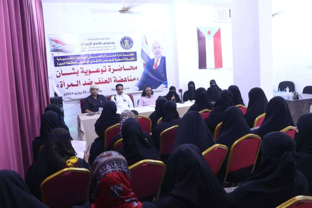 انتقالي المهرة ينظم محاضرة توعوية لمناهضة العنف ضد المرأة نظمت إدارة المرأة والطفل بالهيئة التنفيذية للقيادة المحلية للمجلس الانتقالي الجنوبي في محافظة المهرة...