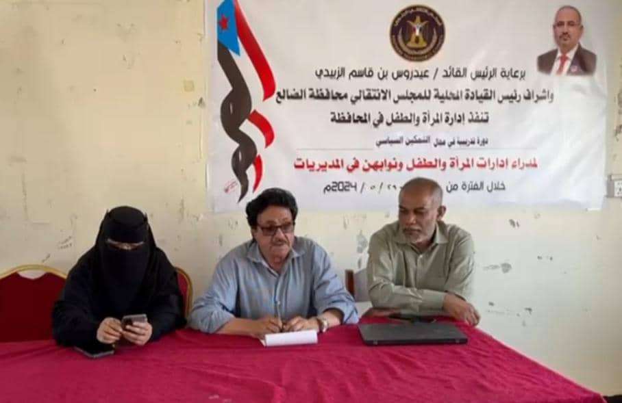 انتقالي الضالع ينظم دورة تدريبية في التمكين السياسي لأقسام المرأة والطفل بالمديريات نظمت إدارة المرأة والطفل بالهيئة التنفيذية للقيادة المحلية للمجلس الانتقالي الجنوبي في محافظة الضالع...