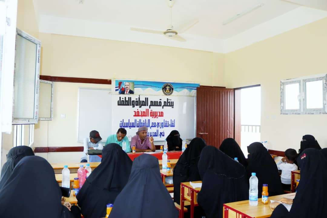 انتقالي المحفد ينظم لقاءً تشاورياً مع عدد من الناشطات بالمديرية نظم قسم المرأة والطفل بالهيئة التنفيذية للقيادة المحلية للمجلس الانتقالي الجنوبي في مديرية المحفد بم...