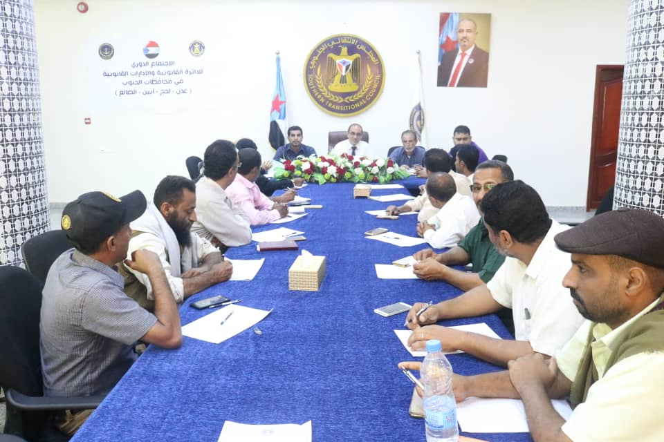 عقدت الدائرة القانونية في الأمانة العامة لهيئة رئاسة المجلس الانتقالي الجنوبي، اليوم السبت، في مقر الأمانة في العاصمة عدن، اجتماعها الدوري الثاني للعام 2021 مع الإدارات القانونية في الهيئات التنفيذية بالعاصمة عدن ومحافظات لحج، وأبين، والضالع، برئاسة الدكتور صالح المرفدي رئيس الدائرة .
