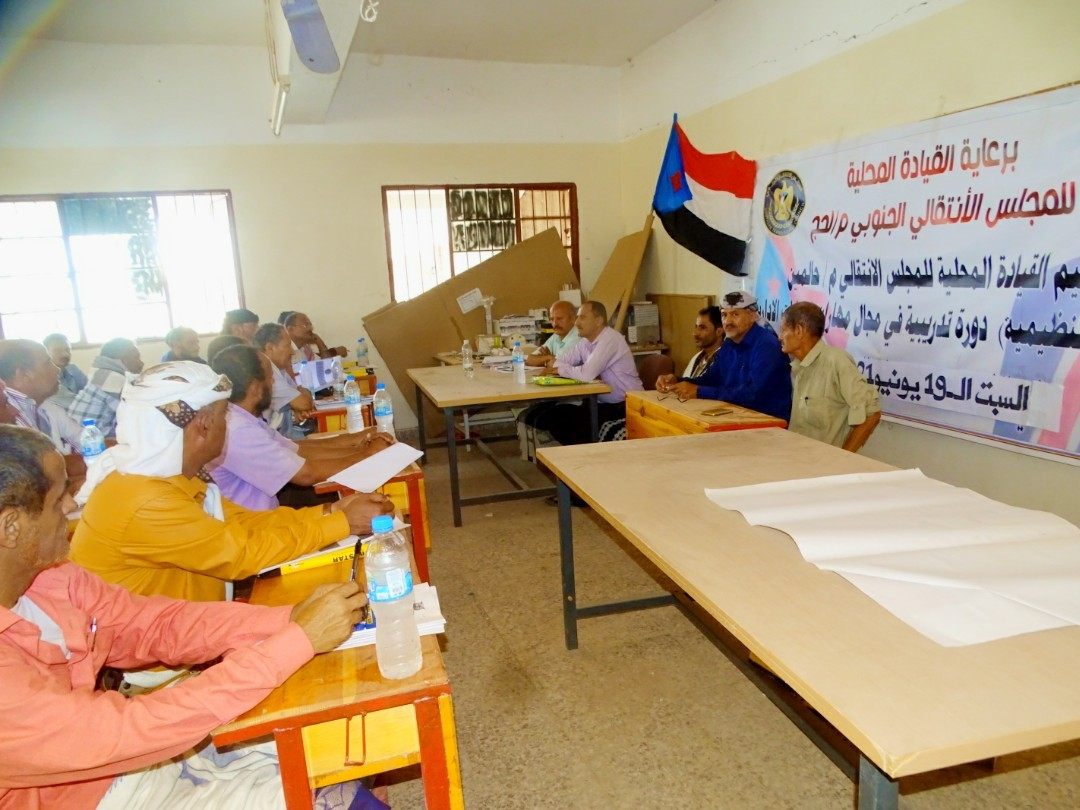 نظمت القيادة المحلية للمجلس الانتقالي الجنوبي في مديرية حالمين بمحافظة لحج ،اليوم السبت، دورة تدريبية لتنمية قدرات رؤساء اللجان المحلية للمجلس بمهارات تطبيق الوظائف الأساسية للإدارة "تخطيط - تنظيم -رقابة".