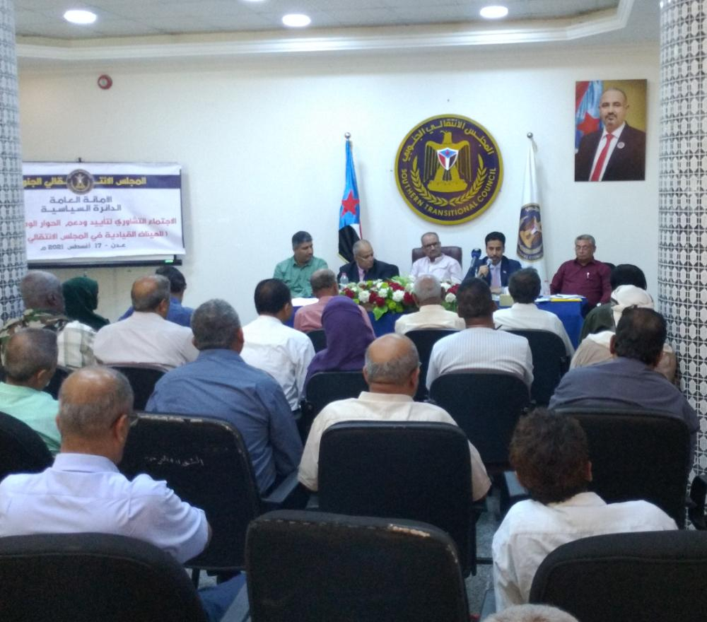 نظمت الدائرة السياسية في الأمانة العامة لهيئة رئاسة المجلس الانتقالي الجنوبي اليوم الثلاثاء، في مقر الأمانة العامة في العاصمة عدن، اجتماعاً تشاورياً لتأييد ودعم الحوار الوطني الجنوبي للهيئات القيادية في المجلس الانتقالي الجنوبي، ترأسه الأستاذ فضل محمد الجعدي نائب الأمين العام، بحضور الأستاذ لطفي شطارة، عضو هيئة رئاسة المجلس الانتقالي الجنوبي، نائب رئيس الجمعية الوطنية، والمهندس نزار هيثم عضو هيئة الرئاسة، رئيس تنفيذية انتقالي العاصمة عدن، والأستاذ محمد الغيثي رئيس الإدارة العامة للشؤون الخارجية بالمجلس.