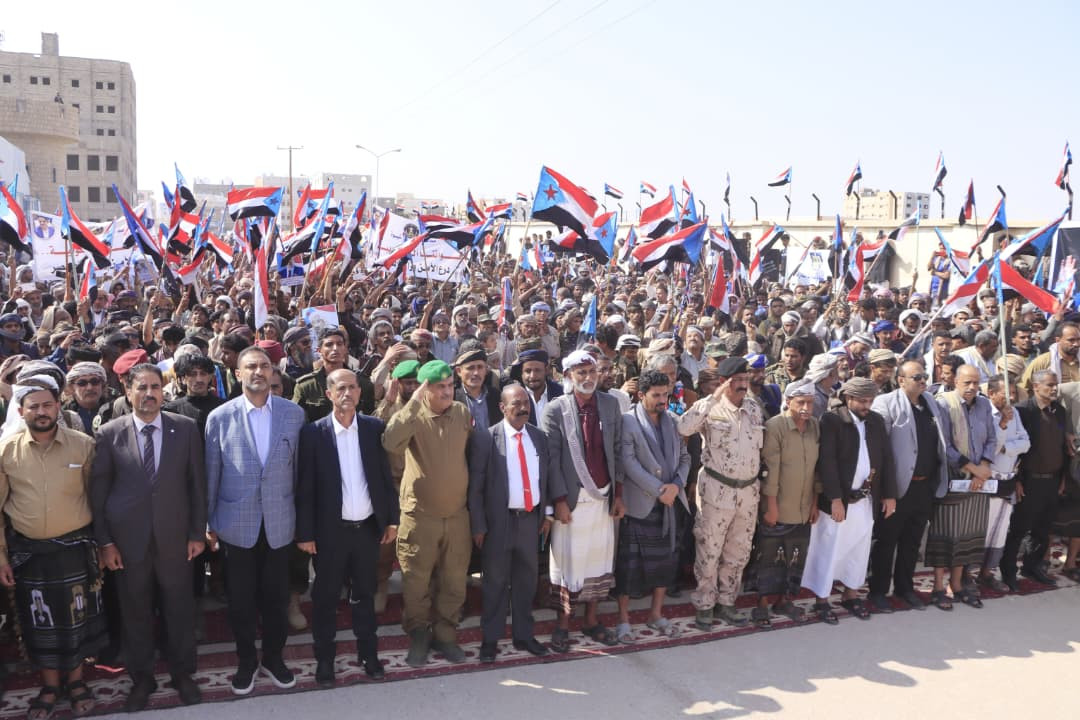 كما ألقى الوكيل المساعد لمحافظة شبوة، الشيخ علي محسن السليماني، كلمةً نقل في مستهلها تحيات المحافظ، عوض بن الوزير، إلى جماهير أبناء شبوة الأحرار، معبرًا عن اعتزازه بالحشود الجماهيرية الكبيرة التي خرجت اليوم لتجدد موقفها الوطني الثابت، وتؤكد اصطفافها الكامل مع إخوانهم في مختلف محافظات الجنوب العربي.