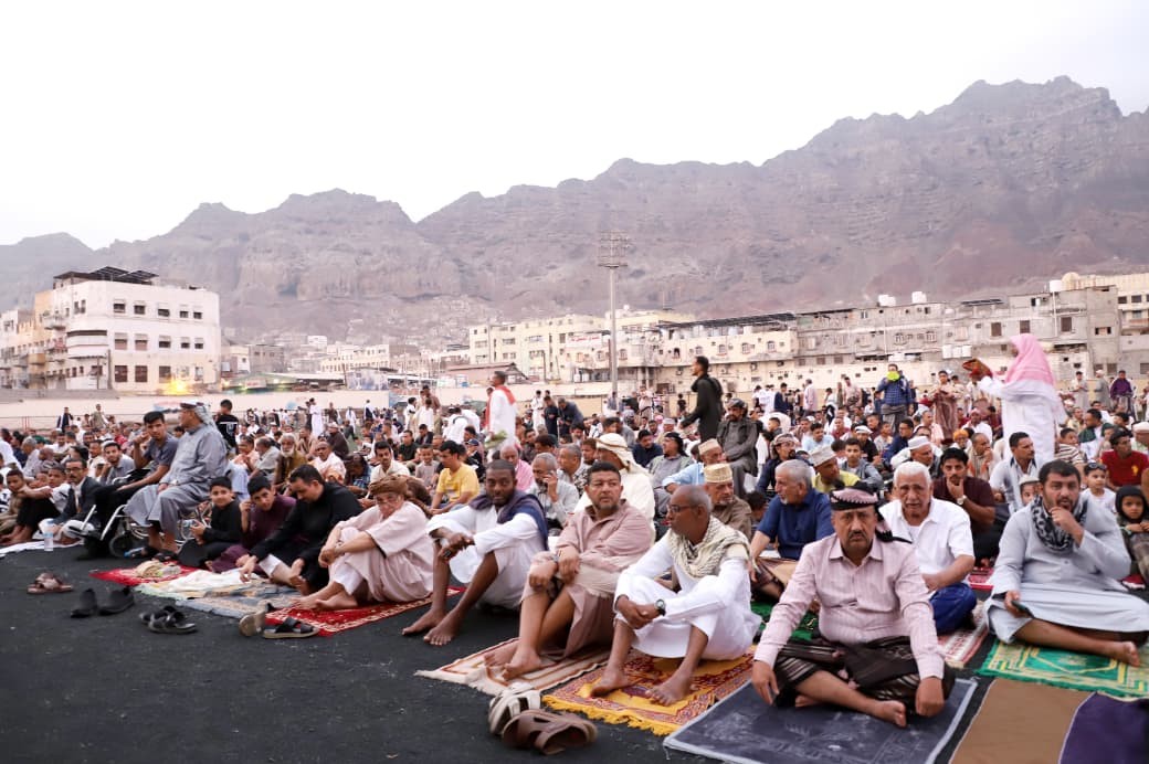 ادى جموعا من أبناء العاصمة عدن، اليوم الجمعة، صلاة عيد الفطر المبارك في ملعب الفقيد حسين باوزير، يتقدمهم الاستاذ وضاح نصر الحالمي، القائم باعمال الأمين العام للأمانة العامة لهيئة رئاسة المجلس الانتقالي الجنوبي، وعدد من قيادة المجلس في الجمعية الوطنية ومجلس المستشارين والأمانة العامة وانتقالي العاصمة عدن.