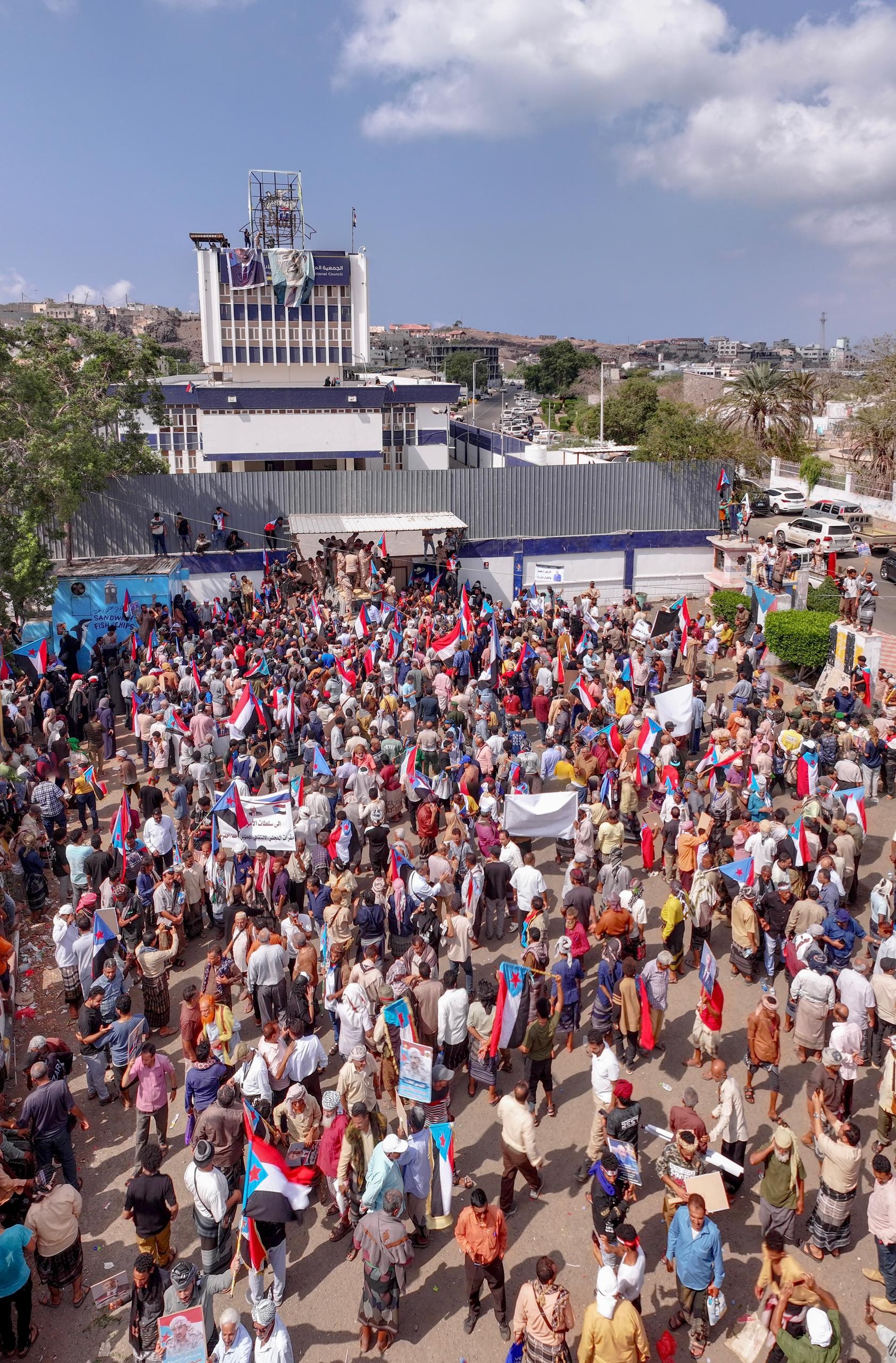 وشهدت مديرية التواهي توافداً جماهيرياً واسعاً منذ ساعات الصباح، حيث احتشد الآلاف أمام مقرات المجلس، مؤكدين تمسكهم بحق المجلس الانتقالي الجنوبي في العمل السياسي والتنظيمي، ورفضهم المطلق للإجراءات التي استهدفت إغلاق المقرات ومنع منتسبي المجلس من ممارسة نشاطهم.