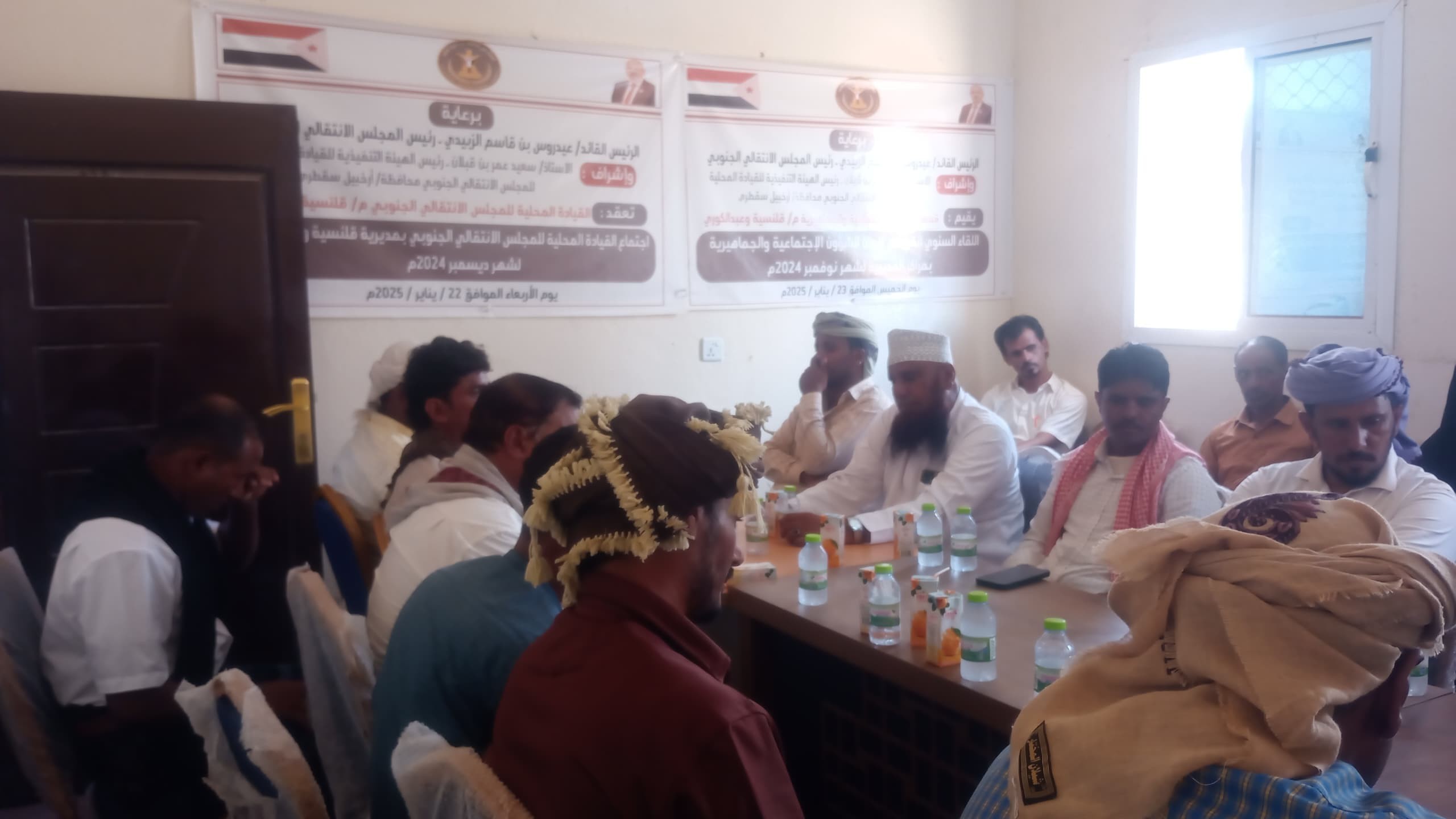 عقدت الهيئة التنفيذية للقيادة المحلية للمجلس الانتقالي الجنوبي بمديرية قلنسية وعبدالكوري في محافظة سقطرى، اليوم السبت، اجتماعها الدوري، برئاسة رئيس الهيئة، سليمان النوبي، وبحضور رئيس تنفيذية انتقالي سقطرى، سعيد عمر بن قبلان.