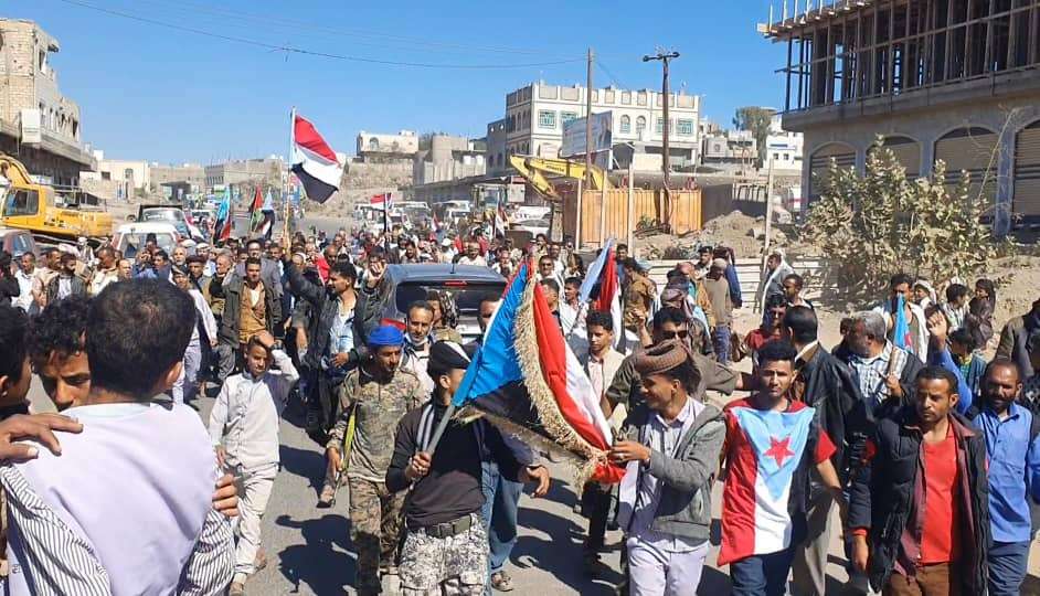 مخيم الاعتصام المفتوح في الضالع يستقبل وفدًا من أكاديميي ومسؤولي السلطة المحلية بالشعيب
