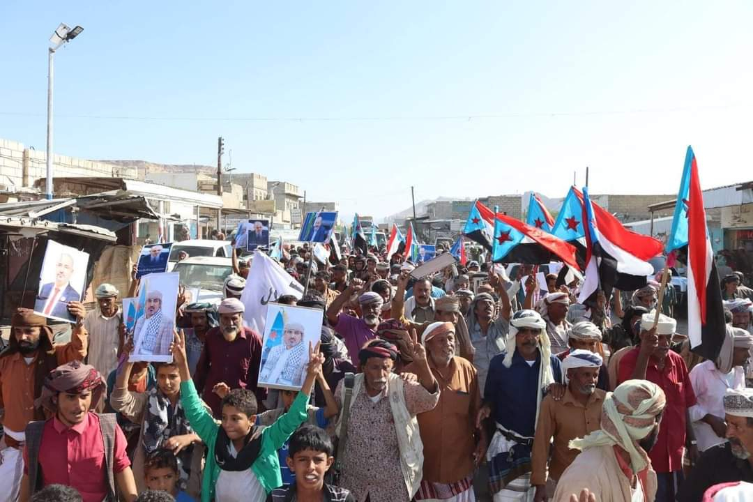 نظمت القيادة المحلية للمجلس الانتقالي الجنوبي بمديرية الوضيع بمحافظة أبين، اليوم الثلاثاء، مسيرة جماهيرية حاشدة ومهرجانا خطابا كبير احتفاءً بالذكرى الـ 54 لعيد الاستقلال الوطني المجيد 30 نوفمبر.
