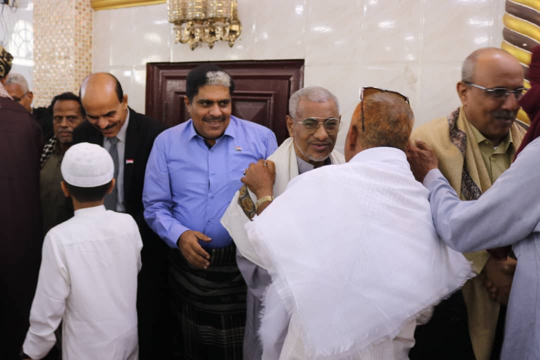 وعقب أدى الصلاة وانتهاء الخطبتين، تبادلت قيادة الانتقالي، مع جموع المصلين التهاني والتبريكات.