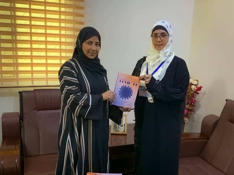 وفي ختام اللقاء الذي حضرته، الأخت راوية محمد أحمد، المدير المالي للمؤسسة، أهدت الدكتورة ميادة للواء الركن أحمد سعيد بن بريك، رئيس الجمعية الوطنية كتاب بعنوان الدليل في الرعاية الحرجة في علاج كوفيد 19 (A Guide in Critical Care Management of COVID – 19) تسلمته بالنيابة عنه المحامية نيران سوقي، وذلك نظير دعمه الدائم للمؤسسة وتوفير العلاج للمرضى في عدن أثناء فترة اجتياح الوباء للعاصمة، وذلك بالتنسيق مع القيادة المحلية في مديرية المعلا، حيث يتناول الكتاب النظام العلاجي لكوفيد 19 والرعاية في أقسام العناية المركزة والطب الحرج.