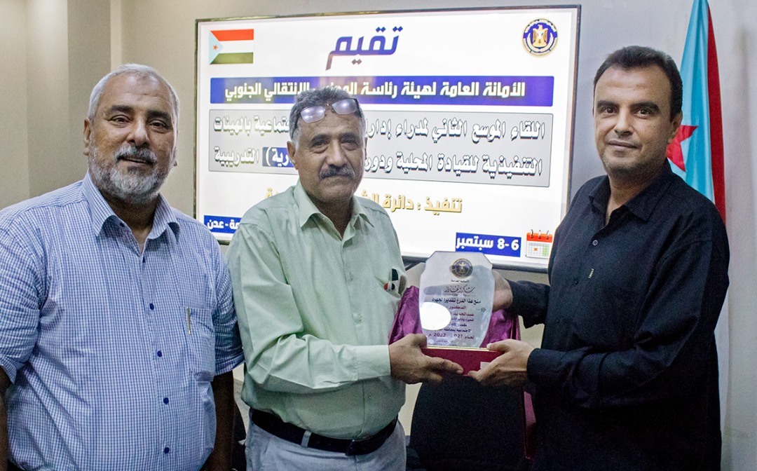 وفي ختام اللقاء تم تكريم الدكتور عبدالحميد ابو طالب مدير إدارة الشؤون الاجتماعية في محافظة الضالع نظراً لنشاط إدارته كأفضل إدارة بين باقي ادارات المحافظات.