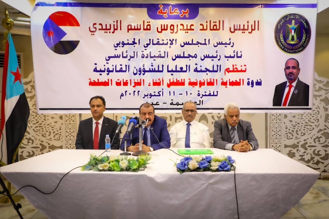 من جانبه أشار الدكتور سعد محمد سعد رئيس اللجنة العليا للشؤون القانونية للمجلس الانتقالي الجنوبي، في كلمته إلى أن الندوة تهدف إلى التعريف بمبادئ وأسس القانون الدولي الإنساني وبيان الهيئات والمنظمات الدولية المعنية بحقوق الطفل ومدى أهمية التعاون المشترك بين الجهات المحلية والدولية بهذا الشأن.