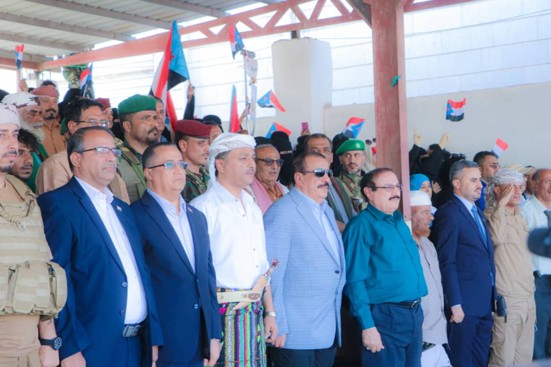 شهد اللواء الركن أحمد سعيد بن بريك القائم بأعمال رئيس المجلس الانتقالي الجنوبي، رئيس الجمعية الوطنية، اليوم الخميس، في مدينة الحبيلين بمديرية ردفان في محافظة لحج، الحفل الخطابي بمناسبة الذكرى الـ 59 لثورة 14 أكتوبر، والذكرى الـ 15 لشهداء منصة الحبيلين، الذي نظمته الهيئة التنفيذية لانتقالي محافظة لحج.