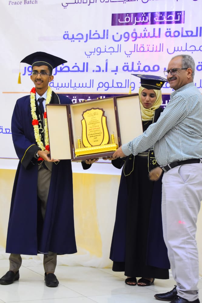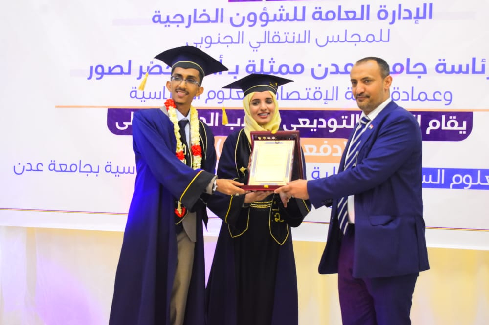 أقيم، اليوم السبت، في العاصمة عدن، حفل تخرج الدفعة الأولى التي حملت اسم "دفعة السلام" من قسم العلوم السياسية، في كلية الاقتصاد والعلوم السياسية، بجامعة عدن، بحضور عضوي هيئة رئاسة المجلس الانتقالي الجنوبي، الأستاذ فضل الجعدي، نائب الأمين العام، والمحامية نيران سوقي نائب رئيس الجمعية الوطنية.