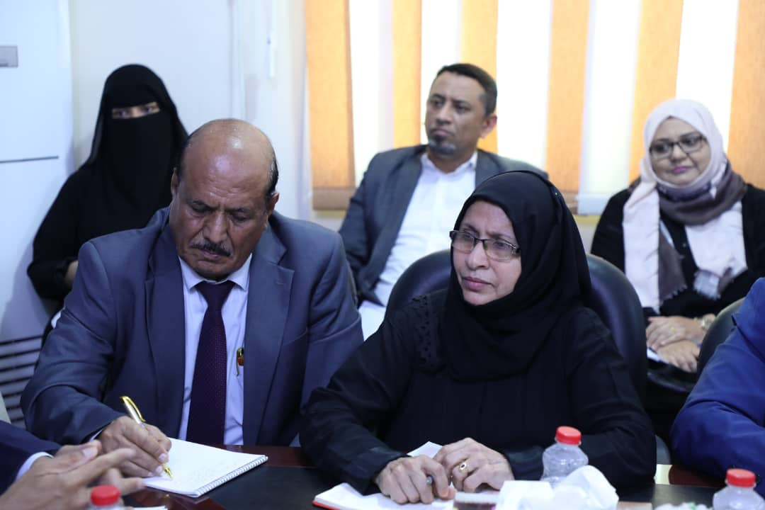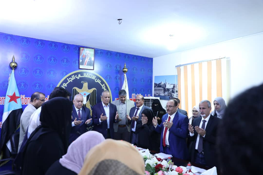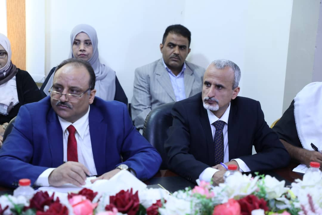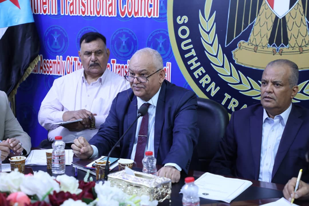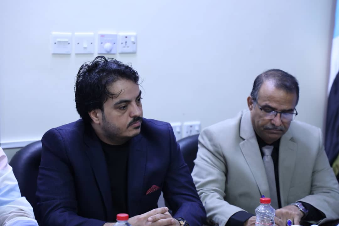 حضر الاجتماع، نزار هيثم، عضو هيئة الرئاسة للمجلس الانتقالي الجنوبي وأحمد قاسم، مدير مكتب رئيس الجمعية.