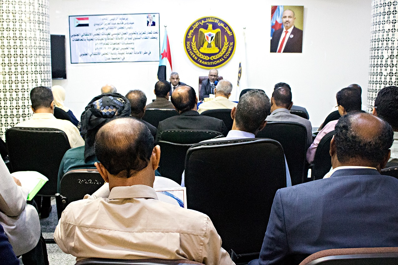 تحت شعار "تعزيز وتطوير العمل المؤسسي لهيئات المجلس الانتقالي الجنوبي، عُقد اليوم الخميس، في العاصمة عدن، اللقاء السنوي لدوائر الأمانة العامة لهيئة رئاسة المجلس، والهيئات التنفيذية للقيادات المحلية ومنسقيات الجامعات في محافظات الجنوب، برعاية الرئيس القائد عيدروس بن قاسم الزُبيدي، رئيس المجلس الانتقالي.