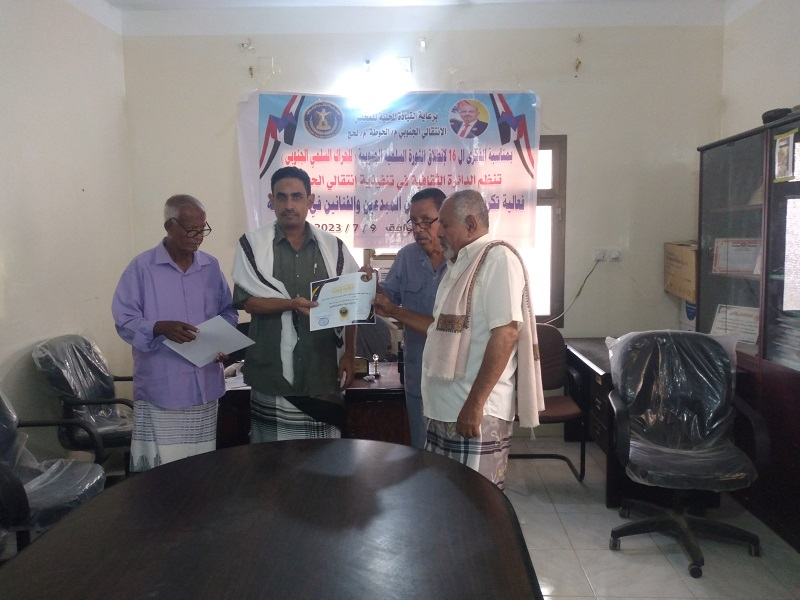 وعبر الأديب منيعم نيابة عن زملائه المكرمين، عن شكره وتقديره لهذه اللفتة الكريمة من قيادة المجلس الانتقالي بمديرية الحوطة، مؤكدًا بأن هذا التكريم يعد حافزا لهم لتقديم المزيد من العطاء والإبداع.