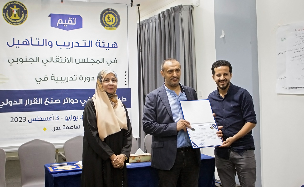 اختتمت هيئة التدريب والتأهيل في المجلس الانتقالي الجنوبي، اليوم الخميس، في العاصمة عدن، الدورة التدريبية التي نظمتها حول طرق التأثير في دوائر صنع القرار الدولي، لعدد من منتسبي مختلف هيئات المجلس الانتقالي.