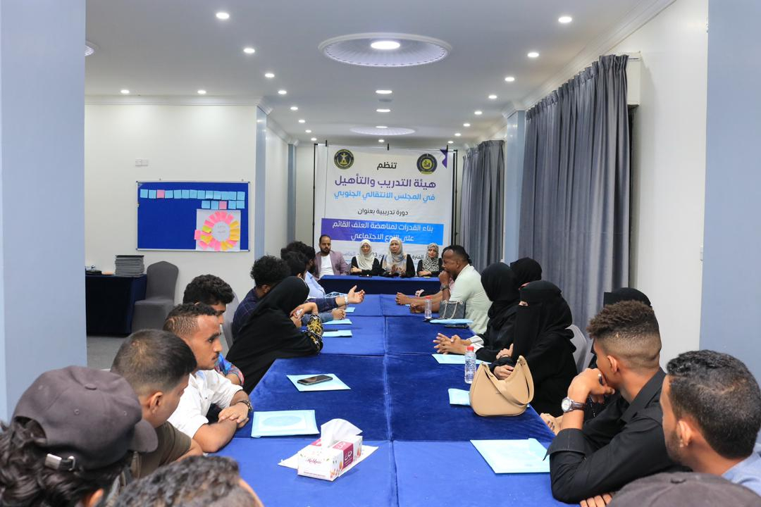 اختتمت هيئة التدريب والتأهيل المساعدة لهيئة رئاسة المجلس الانتقالي الجنوبي، اليوم الخميس، في العاصمة عدن، الدورة التدريبية، الموسومة بعنوان "بناء القدرات لمناهضة العنف القائم على النوع الاجتماعي".