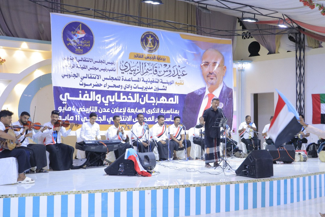 نظمت الهيئة التنفيذية المساعدة للمجلس الانتقالي الجنوبي لشؤون مديريات وادي وصحراء حضرموت، اليوم السبت، حفلاً فنياً وخطابياً بمناسبة الذكرى السابعة لإعلان عدن التاريخي، وذكرى تأسيس المجلس الانتقالي الجنوبي.