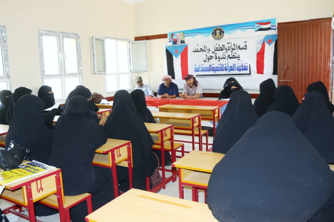 نظّم قسم المرأة والطفل بالهيئة التنفيذية للقيادة المحلية بالمجلس الانتقالي الجنوبي في بمحافظة أبين، اليوم الأثنين، ندوةً بعنوان "تمكين المرأة للتنمية المستدامة"، لعدد من الناشطات المجتمعيات بالمديرية.=