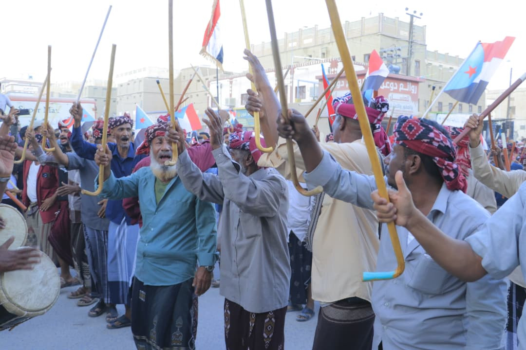 واستعرضت العدد رقصاتها على ايقاعات من التراث الحضرمي، والأشعار المعبرة عن إرادة الشعب الجنوبي، والأهازيج الثورية المعبرة عن سعادتهم بإطلاق عملية "المستقبل الواعد"، وتأييدهم الكامل لكافة خطوات المجلس الرامية إلى تمكين أبناء حضرموت من إدارة شؤونهم بأنفسهم، مؤكدين وقوف الشعب خلف قيادته السياسية بالمجلس.