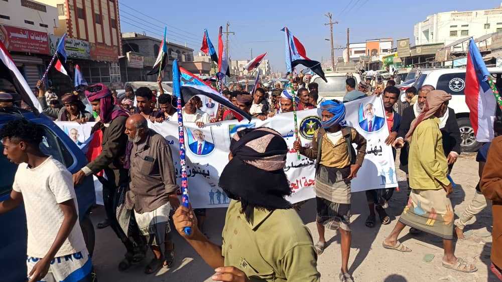 انتقالي ميفعة ينظم مسيرة جماهيرية احتفاءً بالانتصارات القوات الجنوبية في عارين ووادي حضرموت