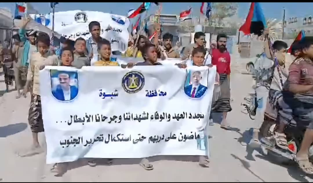 نظمت القيادة المحلية للمجلس الانتقالي الجنوبي في مديرية الروضة محافظة شبوة اليوم السبت، مسيرة جماهيرية حاشدة احتفالآ وتاييدآ للانتصارات التي حققتها القوات المسلحة الجنوبية في عارين بشبوة، ومديريان وادي وصحراء حضرموت.