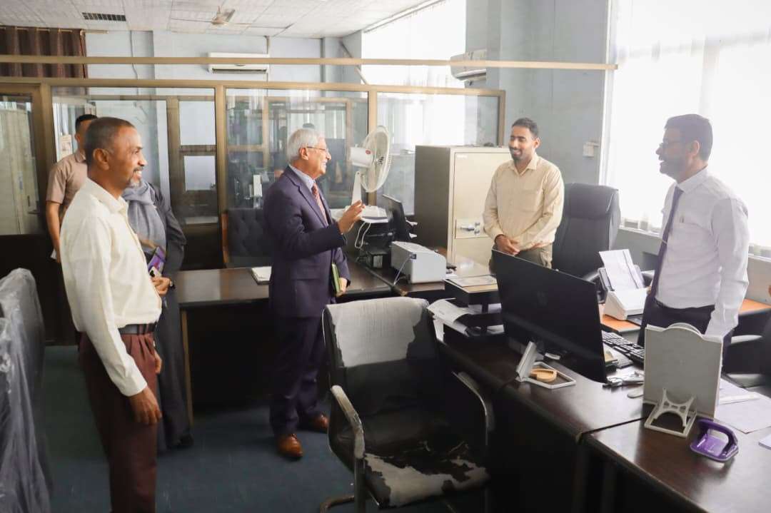 واطّلع الفريق، الذي يضم الدكتور عبدالسلام مسعد، والعميد سليمان بن غانم، والدكتور محمد الجوهي، والأستاذة خلود علي علوي، على سير العمل في جمارك ميناء المكلا، وآلية تسخير الإجراءات بما يخدم المواطنين ويسهم في تسهيل المعاملات وتحسين الأداء المؤسسي.