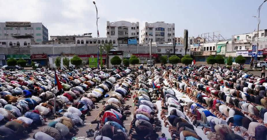 وتقدم جموع المصليين عضو هيئة رئاسة المجلس الانتقالي الجنوبي، رئيس تنفيذية انتقالي العاصمة عدن، مؤمن السقاف، ووزير الشؤون الاجتماعية والعمل، الدكتور محمد سعيد الزعوري، ونائب رئيس الجمعية الوطنية، عصام عبده علي، وعدد من القيادات العسكرية والأمنية والشخصيات الاجتماعية.
