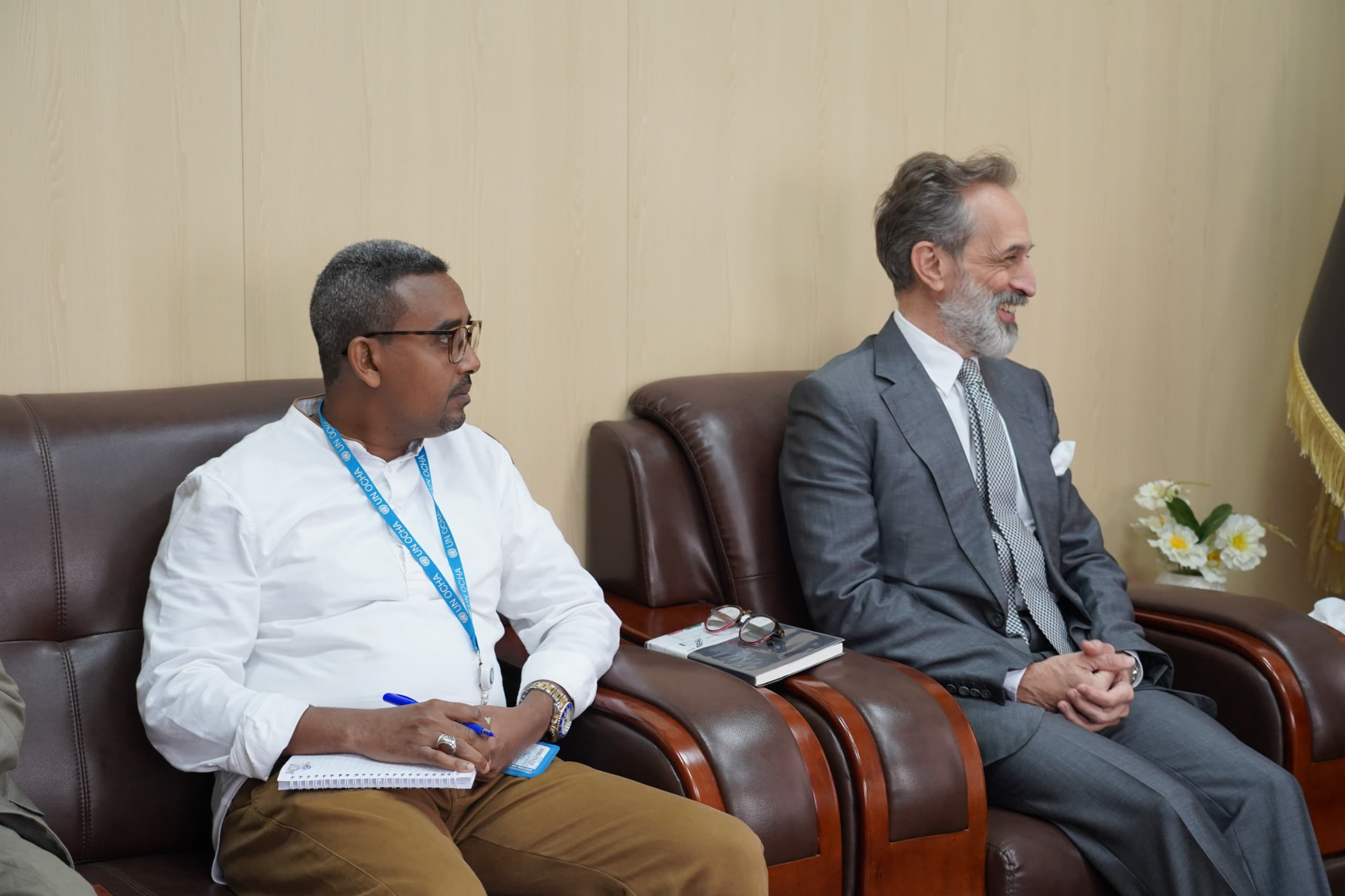 حضر اللقاء من جانب هيئة الشؤون الخارجية كلٌّ من الدكتور نجيب قائد، مدير إدارة المنظمات الدولية وحقوق الإنسان، فيما حضر من جانب الأمم المتحدة السيد زكريا سعيد، مساعد المنسق المقيم.