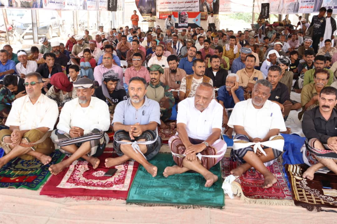 أبناء أبين يؤدّون صلاة الجمعة تحت شعار "الوفاء للحليف الصادق" في ساحة الاعتصام بزنجبار