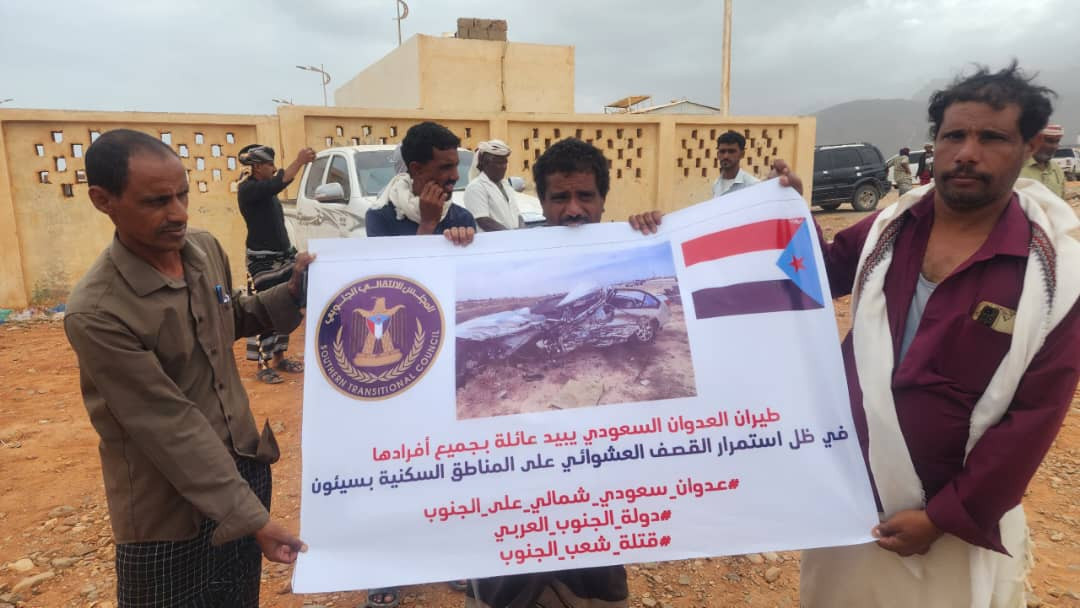 ورفع المحتجون لافتات هتفت ضد العدوان المتواصل على الجنوب، مؤكدين تضامنهم الكامل مع ضحايا القصف الذي استهدف المدنيين والقوات الجنوبية في وادي وصحراء حضرموت، ومعتبرين ما جرى انتهاكًا صارخًا للقوانين والأعراف الإنسانية والدولية.