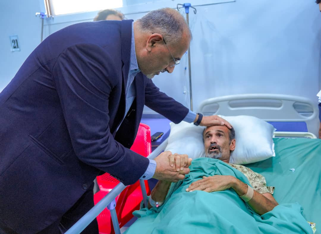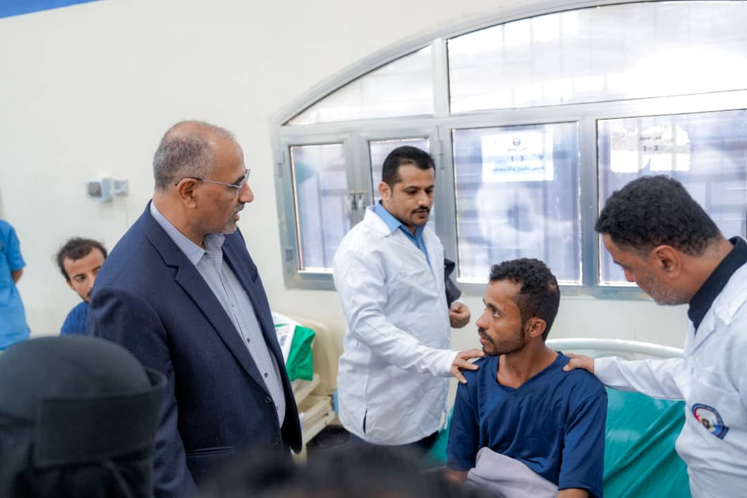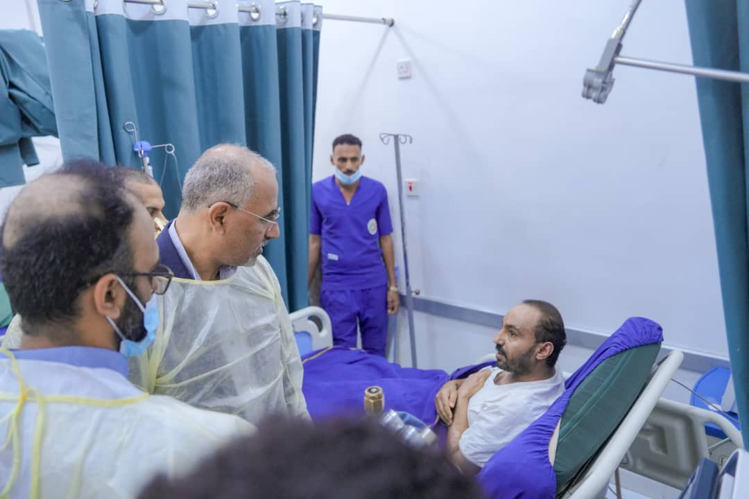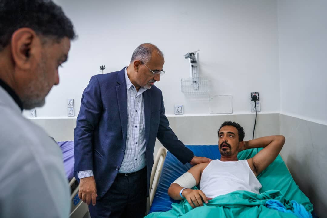واطئمن الرئيس الزُبيدي خلال الزيارة على أحوال الجرحى وأوضاعهم الصحية، ومستوى الرعاية الطبية المقدمة لهم، ومشددًا على ضرورة إيلائهم العناية الكاملة وتوفير كافة الاحتياجات الطبية اللازمة لضمان تعافيهم.