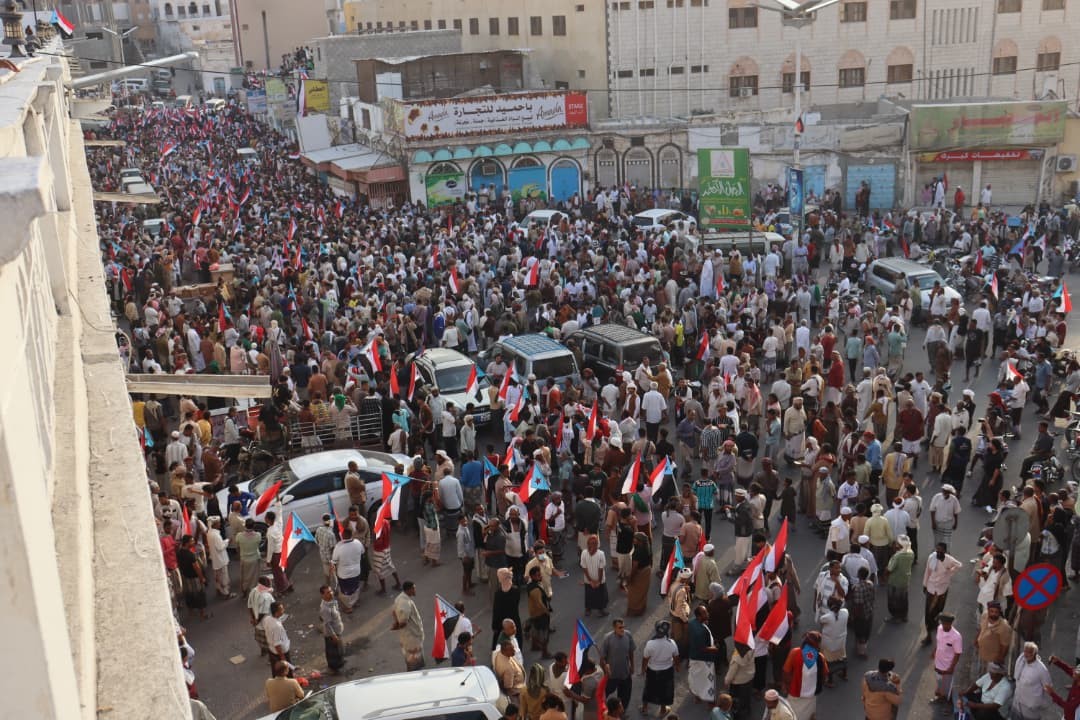 شهدت مدينة المكلا عاصمة محافظة حضرموت حشود جماهيرية لأبناء المحافظة في مليونية "الثبات والتصعيد الشعبي" تلبية للدعوة التي وجهها الرئيس القائد عيدروس قاسم الزُليدي رئيس المجلس الانتقالي الجنوبي.