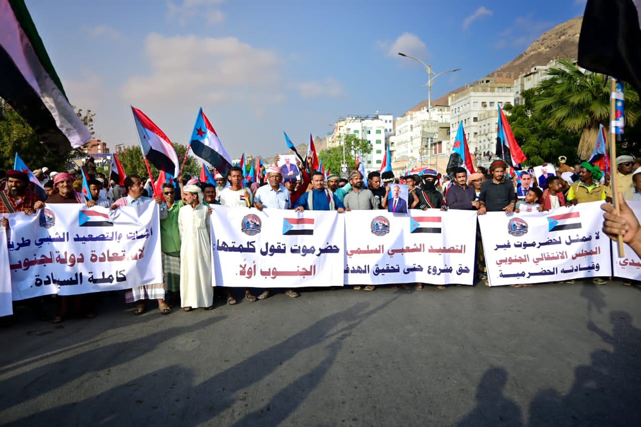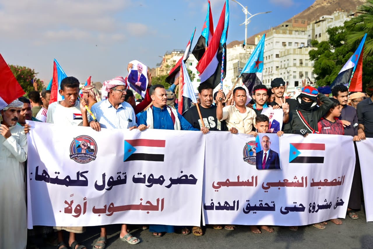 وانطلقت المليونية بمسيرة راجلة حاشدة من جسر الشهيدين بارجاش وبن همّام، وصولًا إلى ساحة الحرية بسكة يعقوب، وسط هتافات وشعارات عبّرت عن إرادة أبناء حضرموت وتمسكهم بالتصعيد الشعبي السلمي حتى تحقيق تطلعات شعب الجنوب.
