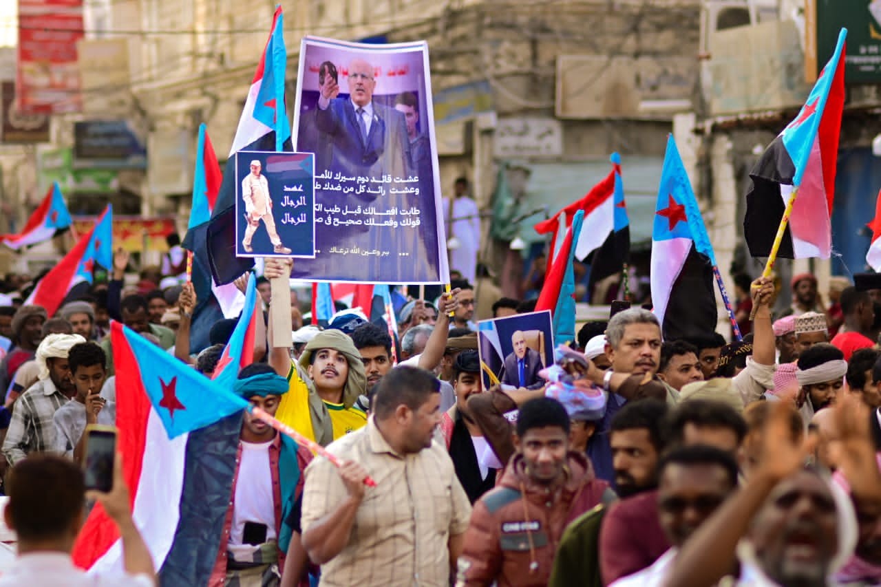 ورفع المشاركون أعلام دولة الجنوب العربي، وصور الرئيس القائد عيدروس بن قاسم الزُبيدي، ونائبه اللواء الركن فرج سالمين البحسني، إلى جانب لافتات وشعارات رافضة لقرار حل المجلس الانتقالي الجنوبي، ومنددة بمحاولات استهدافه أو النيل من حضوره السياسي والشعبي.