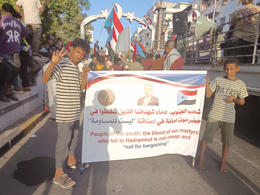ثانياً: نعلن تضامننا الكامل مع أهلنا في حضرموت، ونحيي شموخهم في وجه آلة القتل والتنكيل، ونؤكد أن دماء أبناء حضرموت غالية وهي جزء لا يتجزأ من طهر دماء كل الجنوبيين.