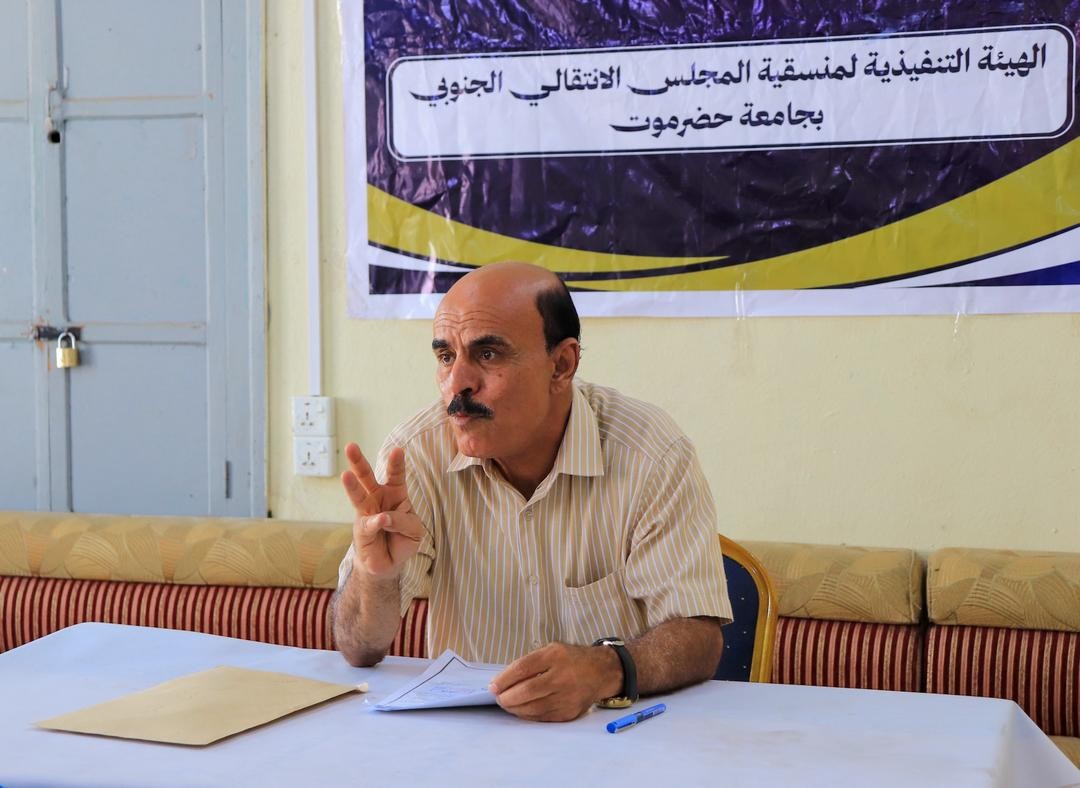 منسقية الانتقالي بجامعة حضرموت تعقد لقاءً برؤساء الهيئات التنفيذية لمنسقيات المجلس بالكليات