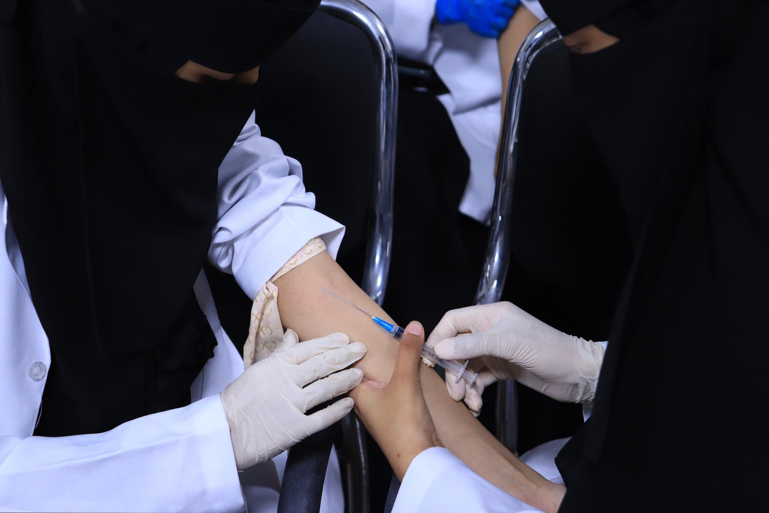 وشهدت الندوة مشاركة عملية للطلاب، حيث طُبّقت مهارات سحب الدم ، كما تعرّفوا على طريقة تركيب إبر الفراشة واستخدامها بالشكل الصحيح مما أسهم في تعزيز مهاراتهم وثقتهم في الجانب التطبيقي