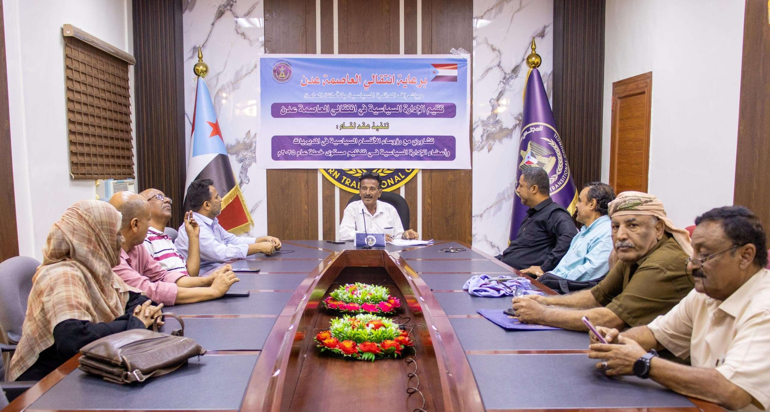 انتقالي العاصمة يعقد لقاءً تشاوريًا مع الأقسام السياسية بهيئات المجلس في المديريات عقدت الإدارة السياسية بالهيئة التنفيذية للقيادة المحلية للمجلس الانتقالي الجنوبي في العاصمة عدن، الي...