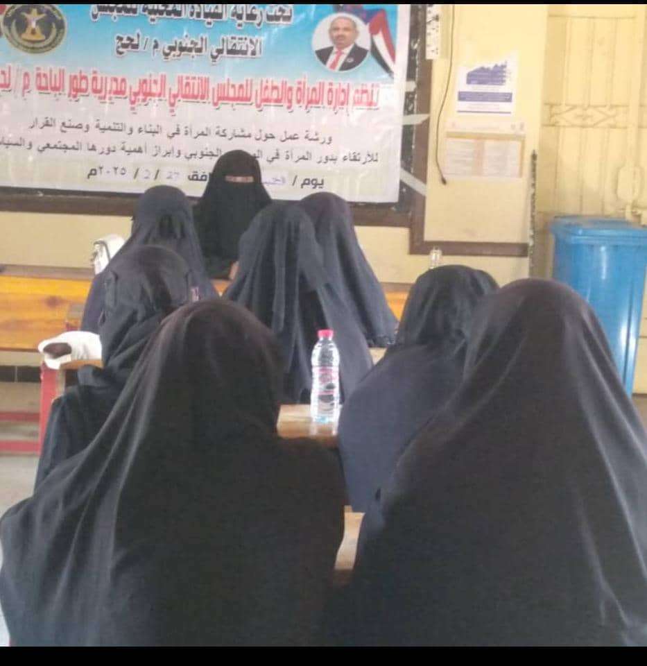 انتقالي طور الباحة ينظم ورشة عمل عن دور المرأة في التنمية وصنع القرار نظم قسم المرأة والطفل بالهيئة التنفيذية للقيادة المحلية للمجلس الانتقالي الجنوبي في مديرية طور الباح...