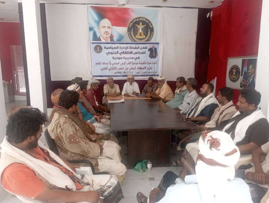انتقالي مودية ينظم ندوة بعنوان "نشر الوعي السياسي والاصطفاف الوطني حول المجلس الانتقالي الجنوبي" نظم القسم السياسي بالهيئة التنفيذية للقيادة المحلية للمجلس الانتقالي الجنوبي في مديرية مودية بمحافظة...