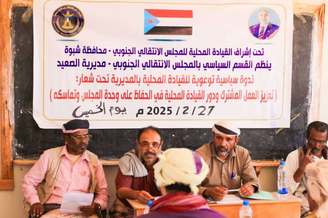 انتقالي نصاب ينظم ندوة سياسية لأعضاء القيادة المحلية بالمديرية نظم القسم السياسي بالهيئة التنفيذية للقيادة المحلية للمجلس الانتقالي الجنوبي في مديرية نصاب بمحافظة...