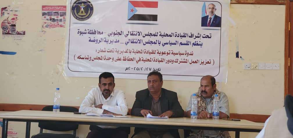 انتقالي الروضة ينظم ندوة سياسية لأعضاء القيادة المحلية بالمديرية نظم القسم السياسي بالهيئة التنفيذية للقيادة المحلية للمجلس الانتقالي الجنوبي في مديرية الروضة بمحافظ...