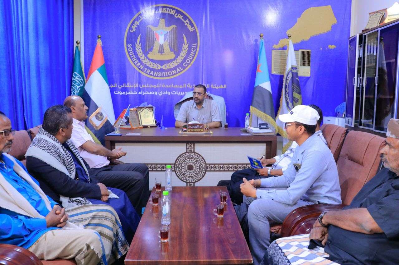 رئيس تنفيذية انتقالي وادي وصحراء حضرموت يلتقي رئيس نادي الوحدة بتريم التقى رئيس الهيئة التنفيذية المساعدة للمجلس الانتقالي الجنوبي لشؤون مديريات وادي وصحراء حضرموت، محمد...