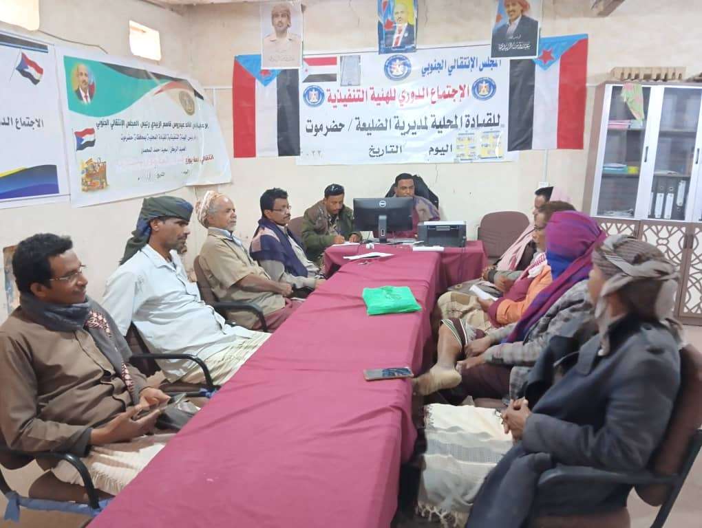 تنفيذية انتقالي الضليعة تؤكد على تبني قضايا المواطنين في المديرية عقدت الهيئة التنفيذية للقيادة المحلية للمجلس الانتقالي الجنوبي في مديرية الضليعة بمحافظة حضرموت، الي...