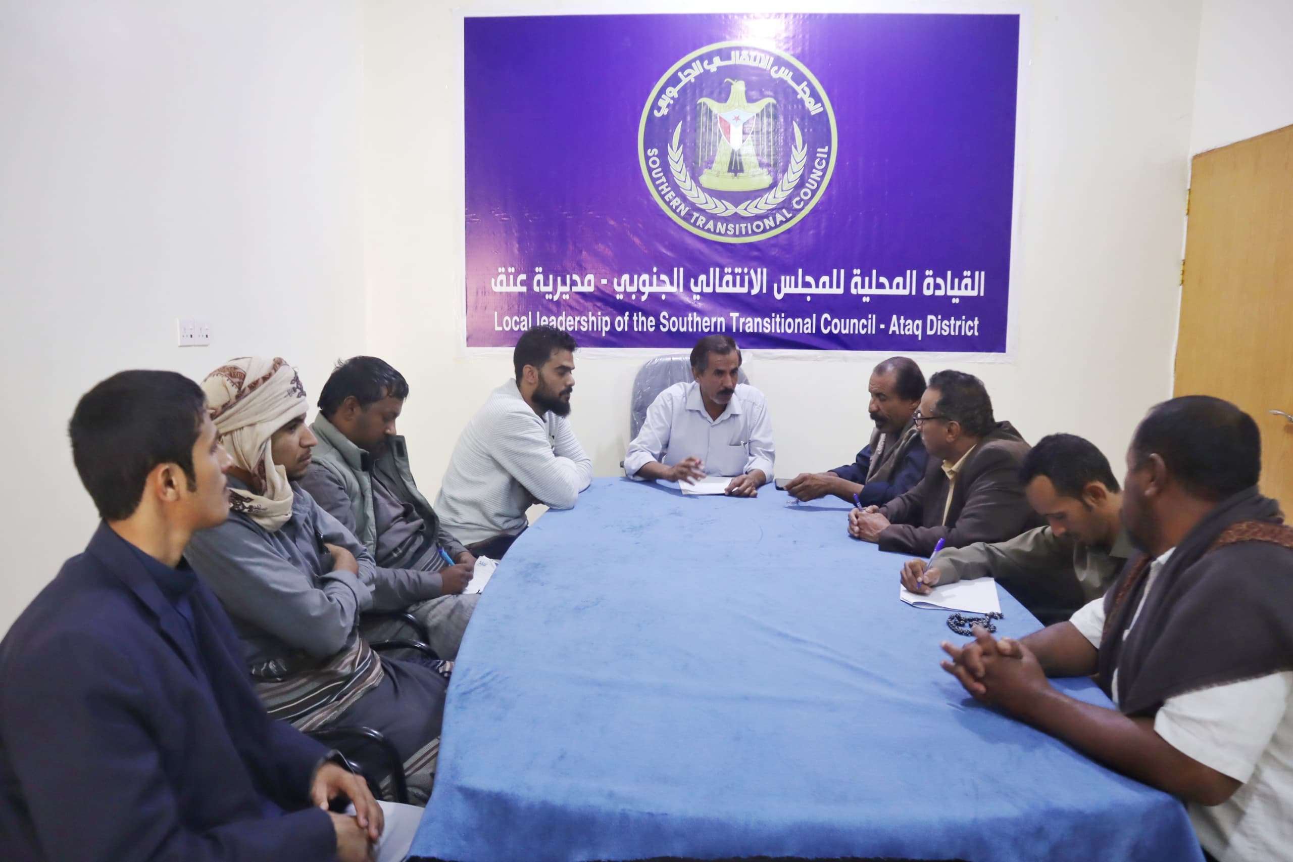 تنفيذية انتقالي عتق تعقد اجتماعها الدوري لشهر يناير عقدت الهيئة التنفيذية للقيادة المحلية للمجلس الانتقالي الجنوبي في مديرية عتق بمحافظة شبوة، اليوم الأ...