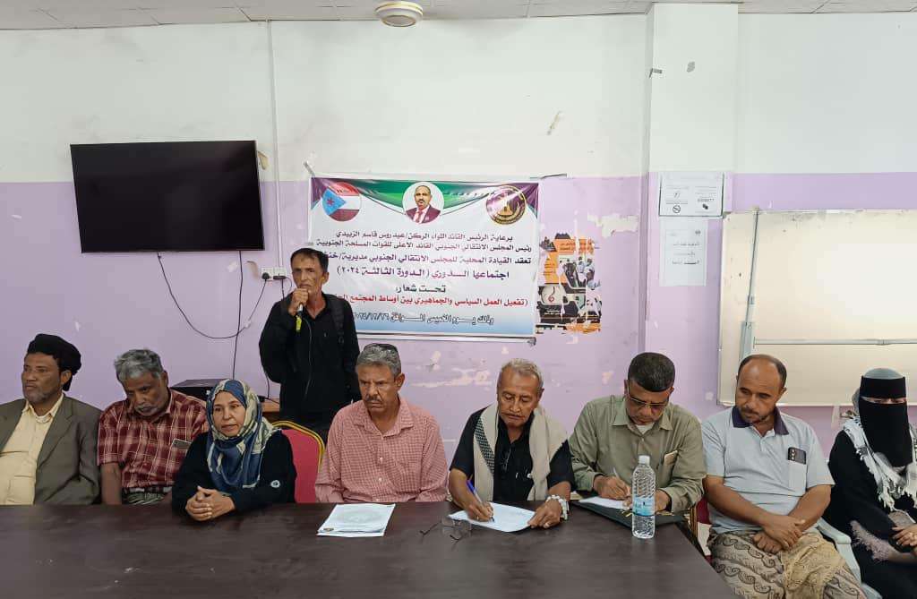 تنفيذية انتقالي ميفعة تعقد اجتماعها الدوري لشهر ديسمبر عقدت الهيئة التنفيذية للقيادة المحلية للمجلس الانتقالي الجنوبي في مديرية ميفعة بمحافظة شبوة، اليوم ا...