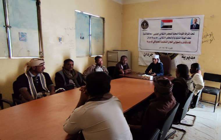 انتقالي جردان ينظم لقاءً تشاوريًا لمسؤولي الشؤون التنظيمية باللجان المحلية بمراكز المديرية نظمت الهيئة التنفيذية للقيادة المحلية للمجلس الانتقالي الجنوبي في مديرية جردان بمحافظة شبوة، اليوم ا...